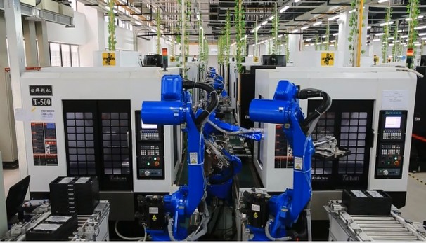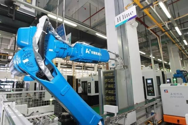 生產(chǎn)線現(xiàn)場配置的華中數(shù)控系統(tǒng)、華數(shù)機(jī)器人