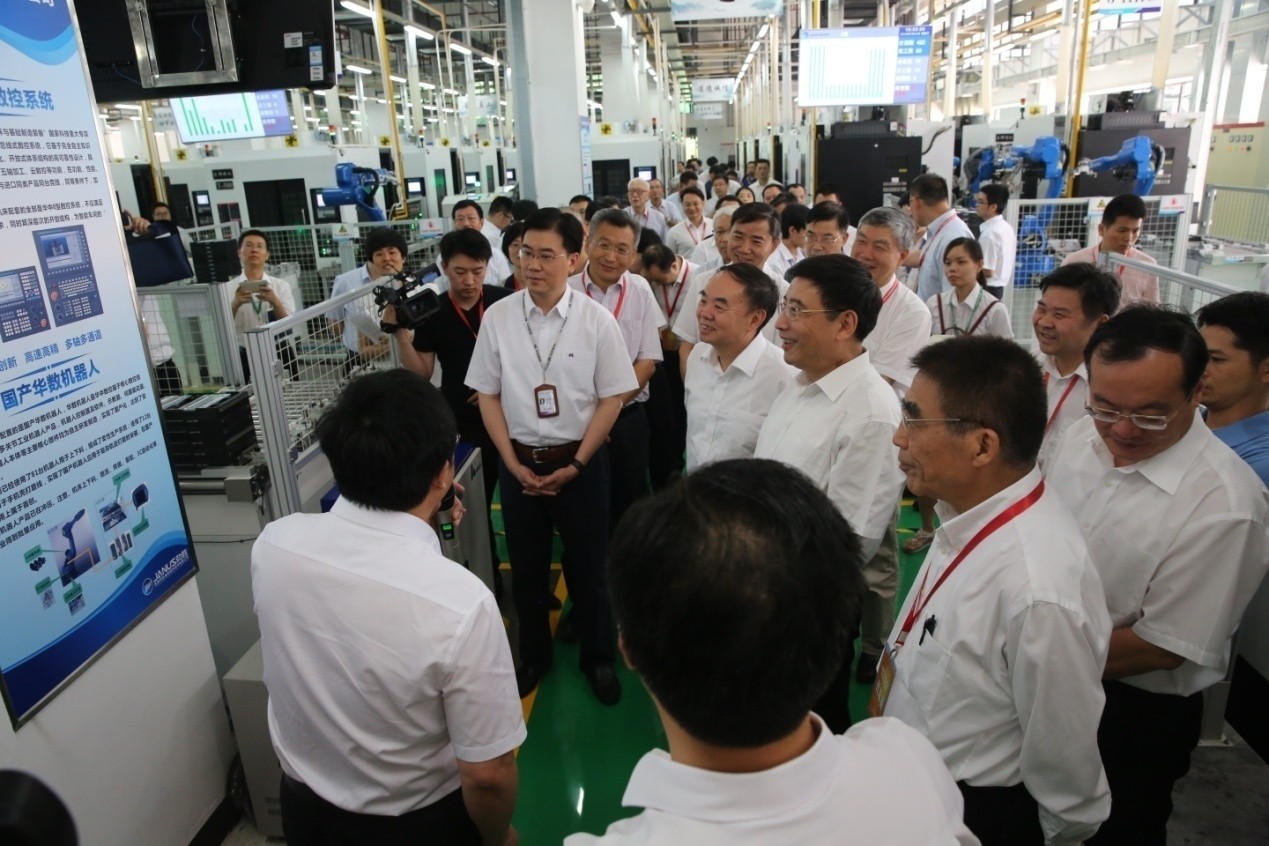 2016年7月24日,由工業(yè)和信息化部、廣東省人民政府、中國工程院主辦的全國智能制造試點示范經(jīng)驗交流會在廣東東莞召開。由武漢華中數(shù)控股份有限公司(以下簡稱華中數(shù)控)、東莞勁勝精密組件股份有限公司(以下簡稱東莞勁勝)等企業(yè)共同建設(shè)的東莞勁勝移動終端智能制造示范車間,實現(xiàn)了全國產(chǎn)、自主化的智能制造,被選為全國智能制造試點示范交流會的唯一示范現(xiàn)場。這表明,在廣東“機(jī)器換人”潮下,全自主的國產(chǎn)化智能車間正在一步步實現(xiàn),我國企業(yè)再也不用去購買價格高昂的外國設(shè)備,國產(chǎn)的裝備系統(tǒng)完全能滿足需求。