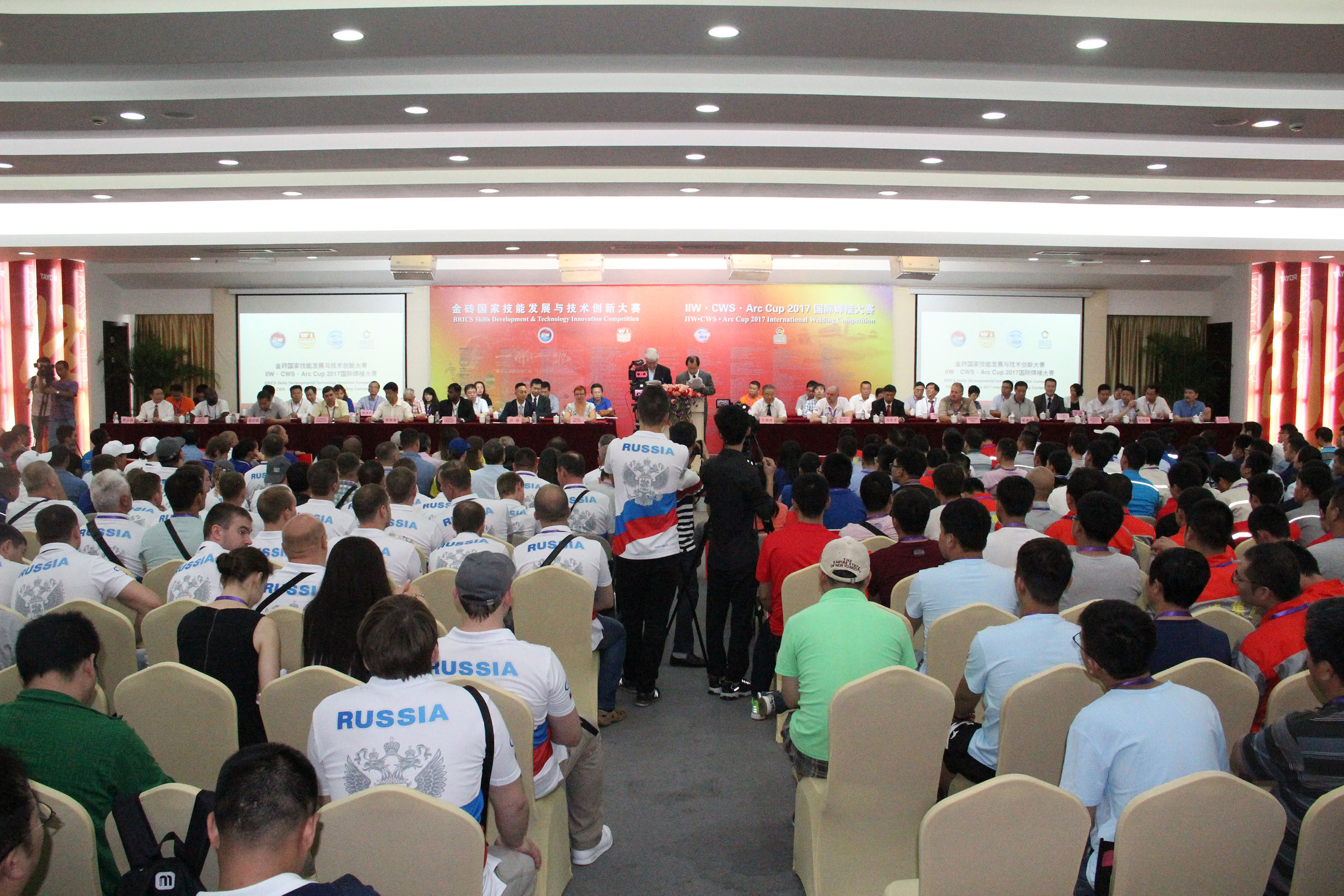 ? ? ? 2017年6月24日,由中國外交部、教育部、工業和信息化部指導,金磚國家工商理事會主辦的金磚國家技能發展與技術創新大賽開幕式暨IIW CWS ArcCup2017國際焊接大賽開幕式在上海通用重工集團有限公司隆重舉行,作為大賽智能制造賽項競賽平臺提供商,武漢華中數控股份有限公司受邀參加本次會議。該賽事是2017 年中國作為金磚國家輪值主席國的重要成果,在國際上影響廣泛,規格較高,吸引了來自來自俄羅斯、印度、哈薩克斯坦、尼日利亞、西班牙等國家以及中國各高職院校、相關企業和社會組織等上百支隊伍參賽。金磚國家各國工商理事會代表、金磚國家工商理事會中方理事會、中國機械工業聯合會、上海市政府、等單位主要領導和選手共500余人出席開幕式。