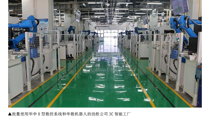 批量使用華中8型數(shù)控系統(tǒng)和華數(shù)機器人的勁勝公司3C智能工廠