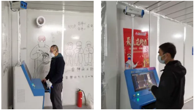 3月9日上午,華中數(shù)控?cái)?shù)控系統(tǒng)事業(yè)部副總經(jīng)理岳應(yīng)超、專項(xiàng)技術(shù)支持部副部長(zhǎng)尹樂(lè)等同事,緊急趕赴雷神山醫(yī)院現(xiàn)場(chǎng),分別在醫(yī)院A區(qū)、C區(qū)醫(yī)護(hù)通道出入口,以及醫(yī)護(hù)人員辦公區(qū)三處地點(diǎn),迅速安裝華中數(shù)控“HY2005B紅外熱成像智能體溫檢測(cè)系統(tǒng)”,馬上投入設(shè)備安裝調(diào)試、培訓(xùn)操作方法等工作,通過(guò)對(duì)醫(yī)護(hù)人員的體溫監(jiān)測(cè),嚴(yán)格檢查健康狀況,避免人員接觸造成交叉感染。